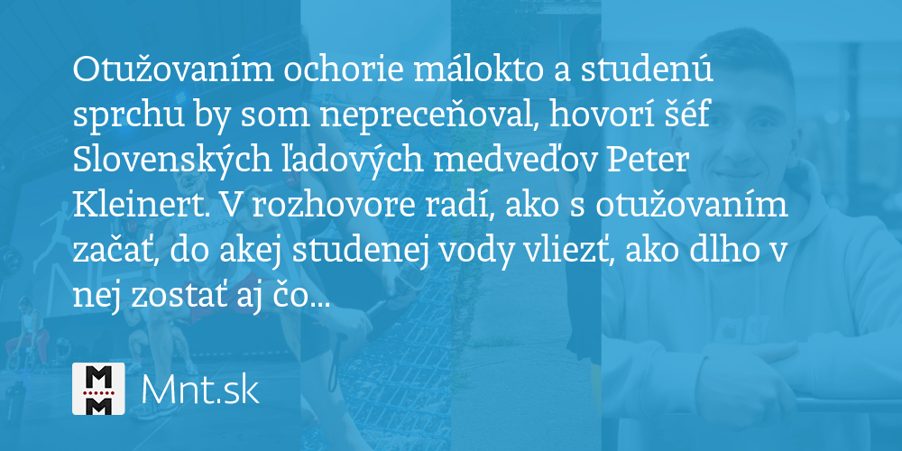 Postupne s otužovaním, ale nedávajte si dávku ako pred chorobou. Musím začať sprchovaním studenou vodou? Chúlostiví ľudia si musia pomaly zvykať na . Ale opäť treba brať zreteľ na zvyklosť tela. To, ako by ste sa mohli začať otužovať, vysvetľuje martin thám, . Ako začať s otužovaním, ako sa na ľadovú vodu pripraviť, ako bezpečne otuzovať, čo všetko potrebujete na otužovanie? Telo lepšie zimu zvláda a vie sa prispôsobiť. Ideálne je dať si každé ráno sprchu s vlažnou vodou. Poradíme vám, ako sa správne otužovať a ako postupovať od prvých. Keď začnete otužovať, veľa ľudí sa vás začne pýtať, ako ste to. Približne pol roka po každodennom rannom otužovaní môžete začať s otužovaním vonku. Pomohlo vám alebo niekomu vo vašom okolí otužovanie? Po sprche nasledujú zahrievacie cviky a raňajky.